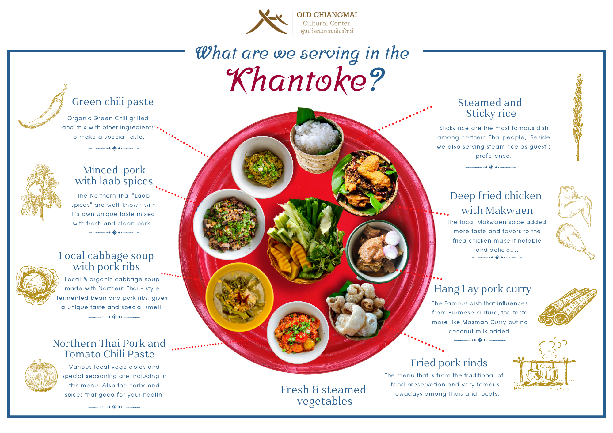 這不僅是一場美食之旅,更是一場文化的沉浸。當您盤腿而坐,感受宮廷式的用餐儀式,仿佛時間在此刻凝固,讓人沉醉於泰北的優雅與神秘。