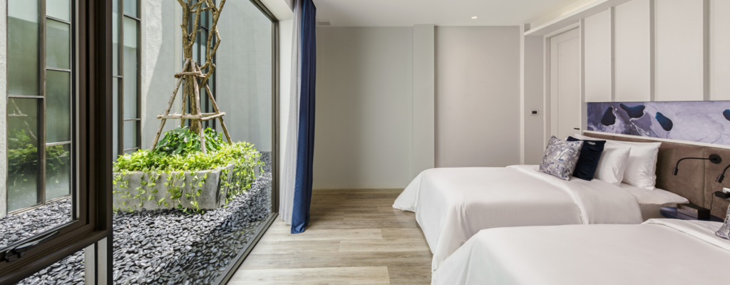 飯店整體設計以自然元素與舒適空間為概念,庭院泳池被綠植環繞,營造出如城市綠洲般的放鬆氛圍。寬敞的客房搭配現代化設施與溫暖設計風格,讓旅客在探索清邁文化與美食之餘,也能享受安靜舒適的住宿體驗。