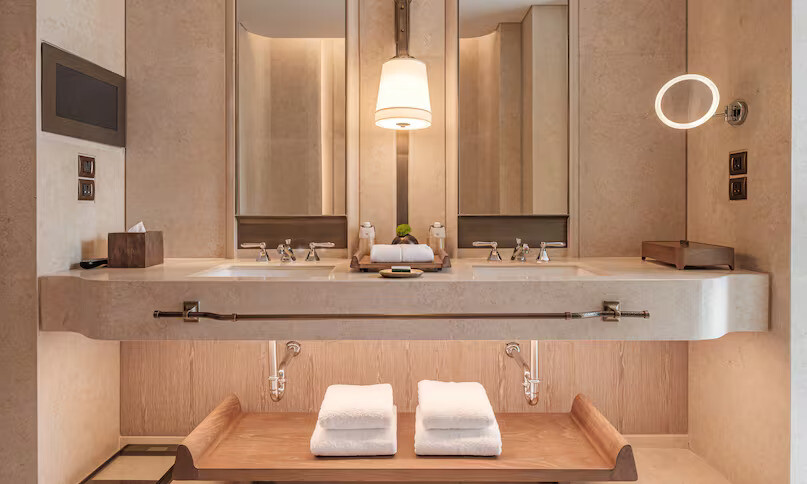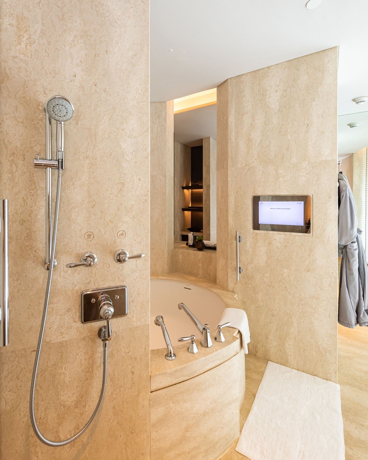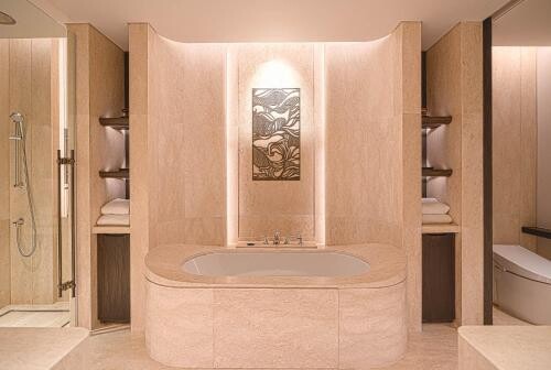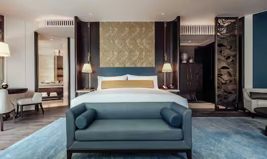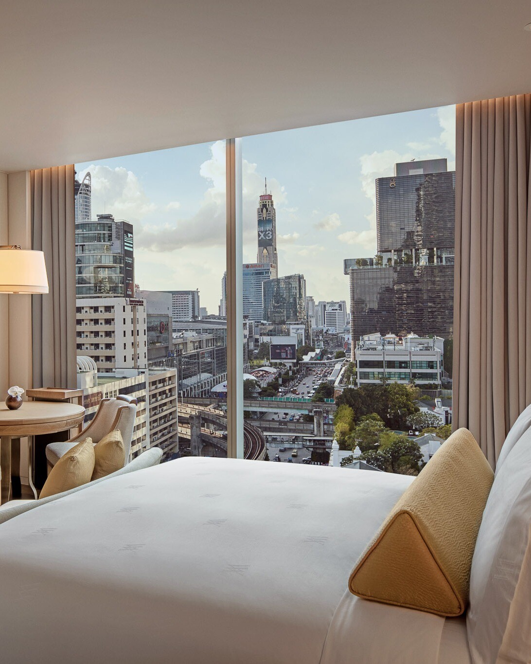 坐落於曼谷最核心的 Ratchaprasong 商圈,Waldorf Astoria Bangkok 將紐約經典奢華氣息帶入泰國,打造出一處結合藝術品味與現代優雅的都會殿堂。由知名設計師 André Fu 操刀室內設計,整體氛圍在低調中流露尊貴,從挑高大廳到金屬線條與柔光映襯的細節,都讓人一踏入就感受到「無可取代的質感」。