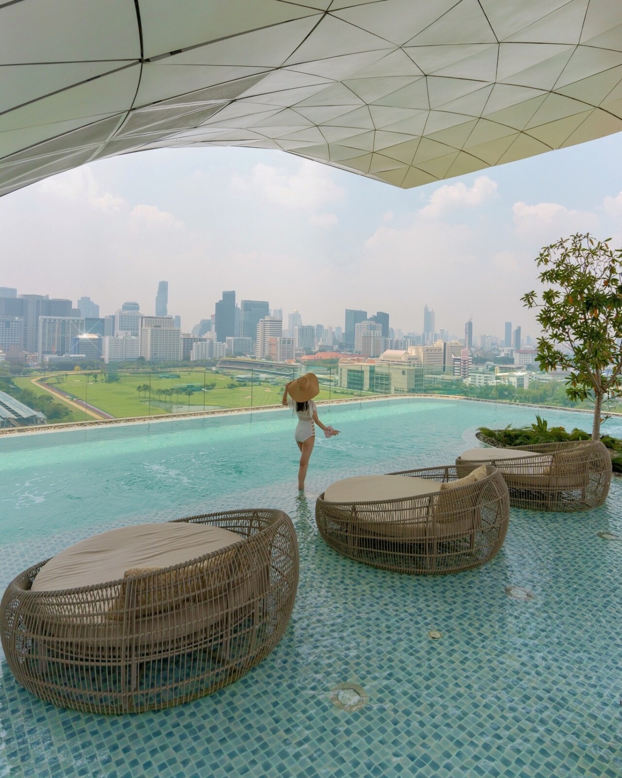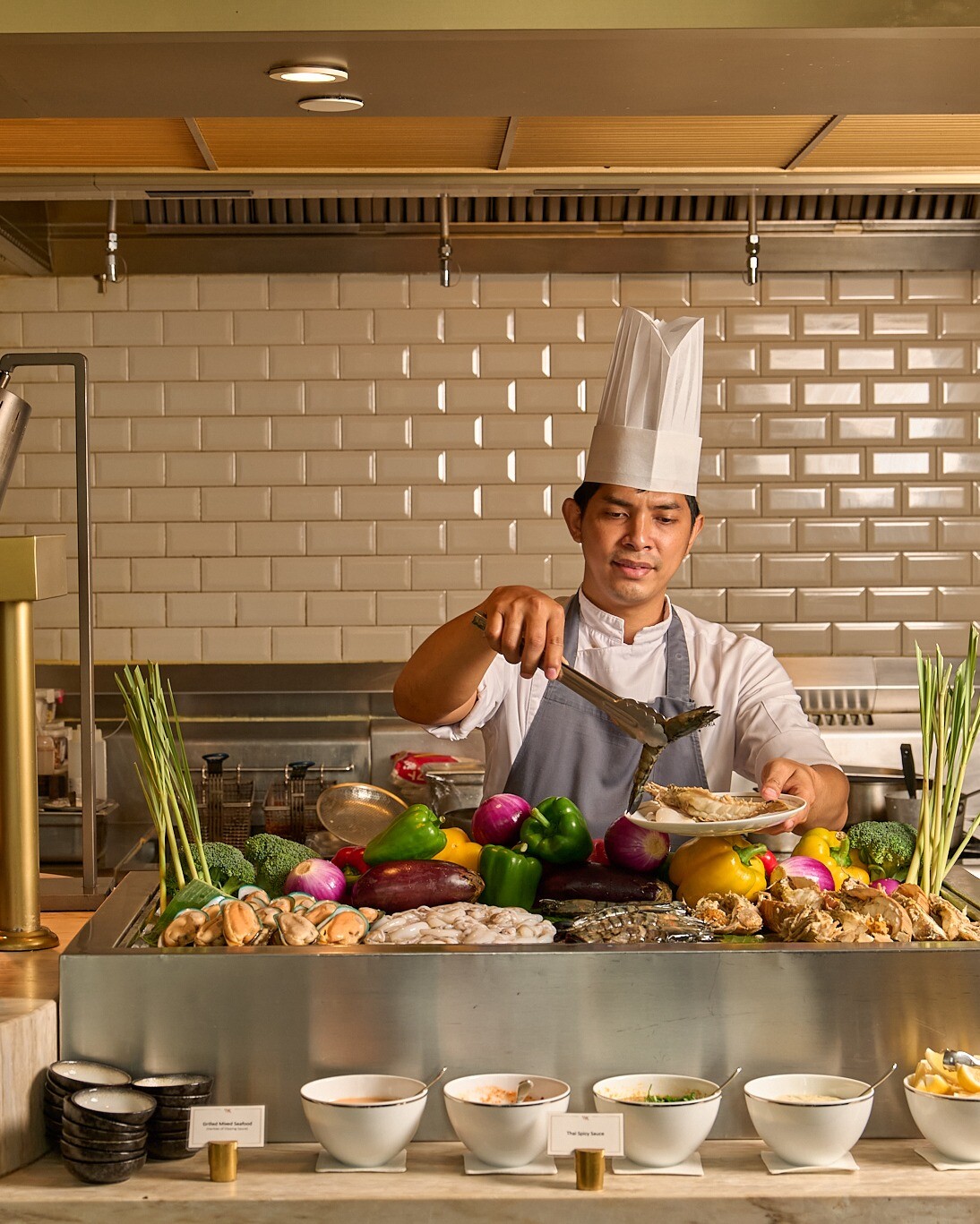 飯店提供 171 間寬敞客房與套房,配備落地窗景、Ferragamo 沐浴備品與獨立浴缸,每個轉角都藏著細緻品味。餐飲選擇更是星級級別──從主打現代牛排料理的 Bull & Bear、優雅細膩的 Front Room,到高空酒吧 The Loft 與 Champagne Bar,每一處都能欣賞曼谷夜空下的璀璨天際線。